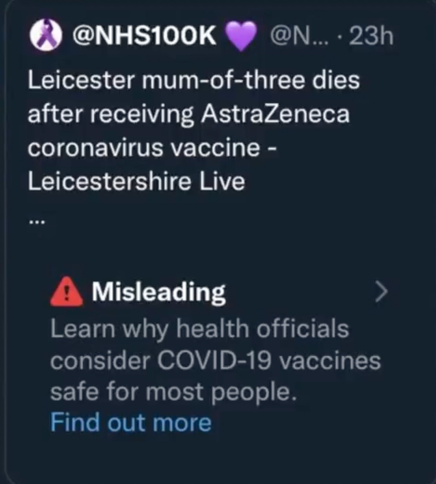 Three children are now without their mother after what doctors have confirmed to be blood clots caused by the jabs. A local news outlet covered the sad story, but Twitter censored it and slapped a "misinformation" tag on it. What makes the whole story worse is that the person who Tweeted it was the daughter of the victim who is now being told by Twitter that sharing details about her own mother's death is a lie.
