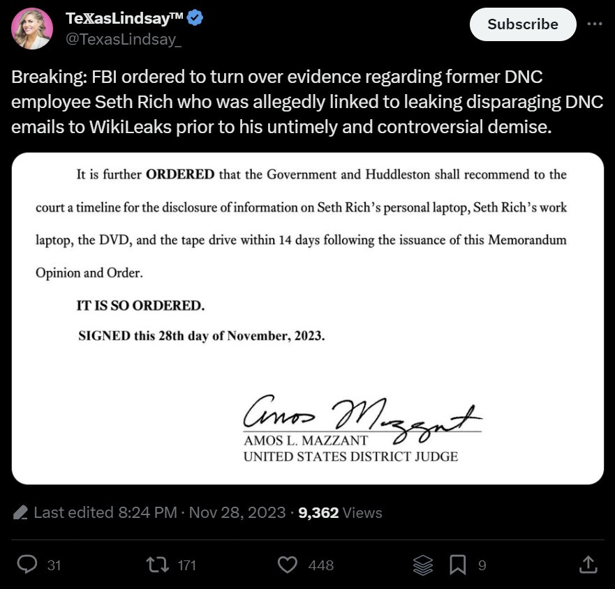 Is It Really Happening? Judge Orders FBI to Turn Over Evidence About the Hit on Former DNC Staffer Seth Rich