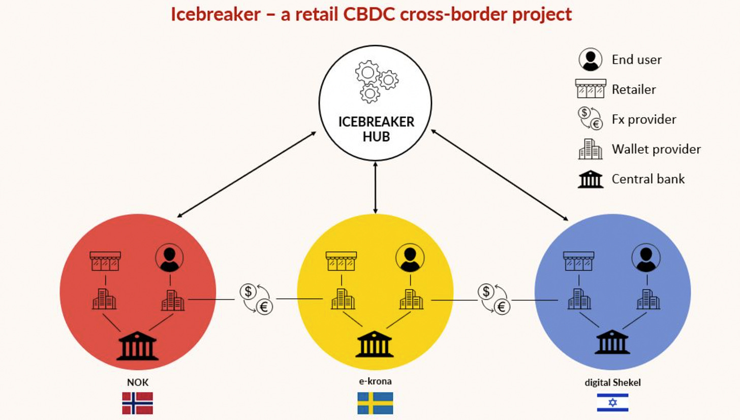 The central banks of Israel, Norway, and Sweden, as well as the Bank of International Settlements (BIS), have teamed on a project, called Project Icebreaker, to test the feasibility of central bank digital currencies (CBDCs) for cross-border payments.